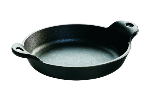 This round mini server will enhance any cookware offering. Lodge tableware is versatile, perfect for hot or cold appetizers, desserts, sauces or specialty entrees. Always in season, this mini round server will create positive responses in your home as well as over an open campfire. Seasoned ready to use. 6 3/8" diameter, 1 1/16" deep